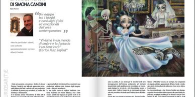 <<Italian-born artist Simona Candini embraces the darkness. Merging her love for manga and the Japanese aesthetic with the Italian masters that influenced her so heavily growing up, the result creates a dream-like image with a sinister undertone. Bringing together fairy tale elements and childlike imaginings to her canvas, she has recently started to translate her style to platform toys with great success>>